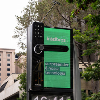 Com um visual clean e sofisticado, o relógio digital personalizado traz elementos icônicos da Intelbras, alinhados ao conceito "Surpreender é nossa tecnologia". A peça não apenas informa a hora e a temperatura, mas também conecta o público à essência inovadora da marca, destacando-se no fluxo intenso de uma das maiores metrópoles do Brasil.
